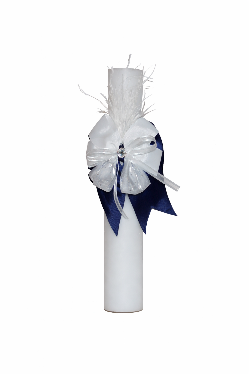 Decorata cu fundita, lumanarea este perfecta pentru botezul unui baietel.