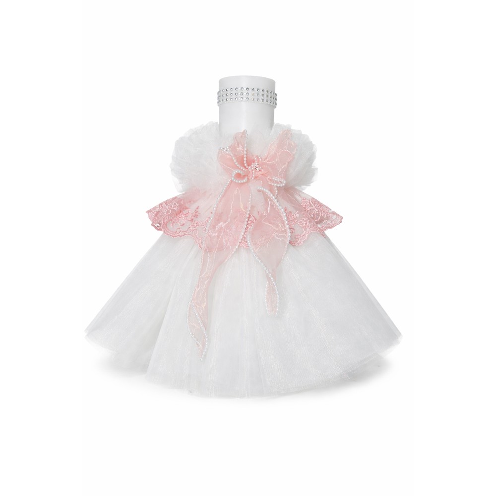 Lumanare botez ornata cu dantela si fundita roz pudra