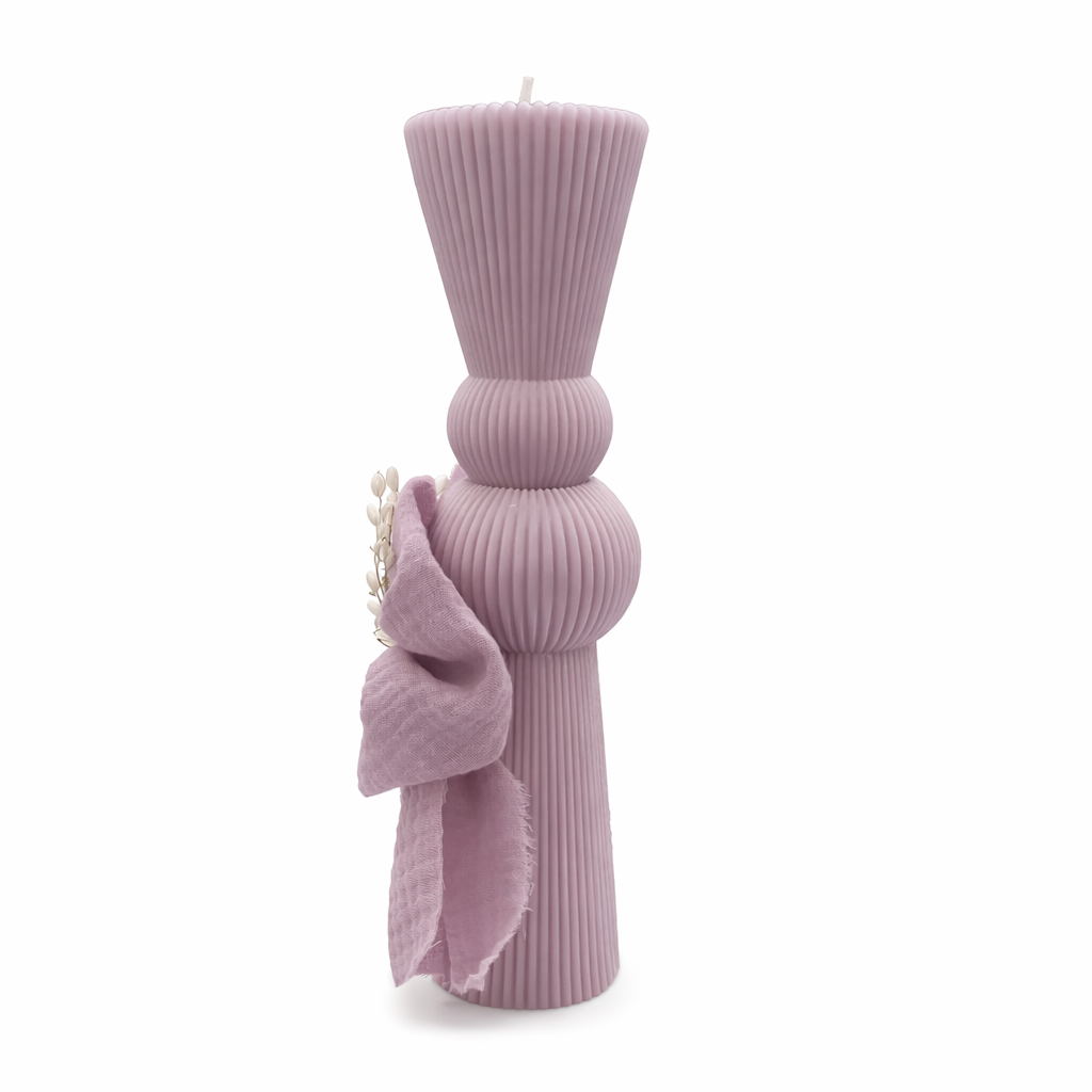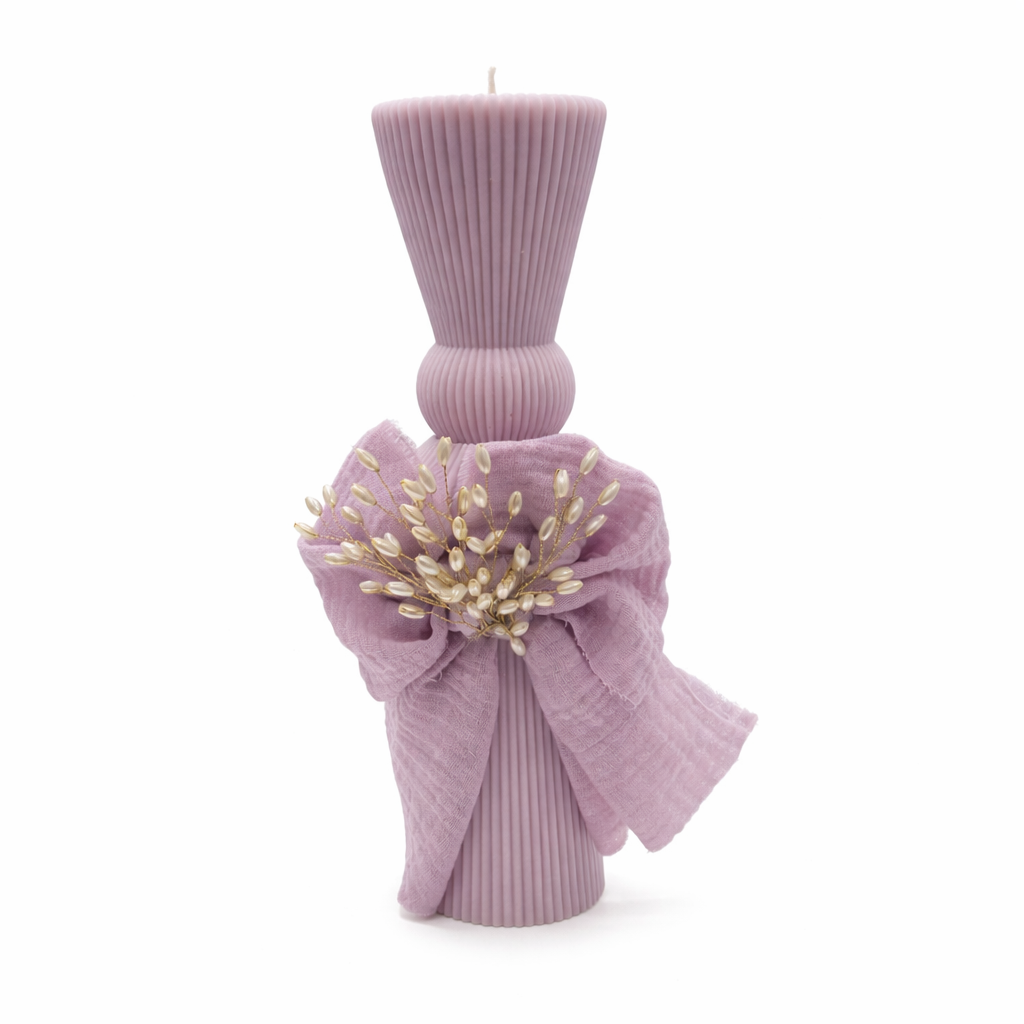Lumanare clepsidra culoare roz pudra ornata cu funda
